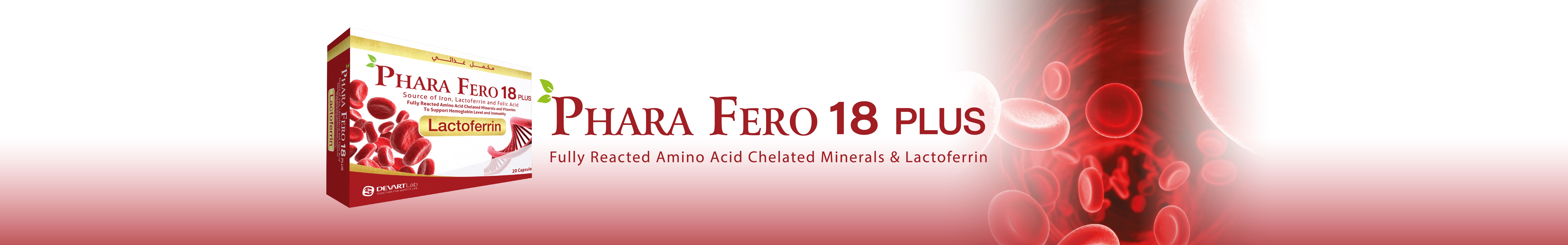 The first nutraceutical hematinic consists of 4 minerals & 12 vitamins Plus Lactoferrin 100 mg with 95% Purity and the highest bioactivity available in Egyptian market 92%, designed by human mineral technology guaranteeing maximum bioavailability (95%) & minimal side effects, Pharafero 18 Plus elevates hemoglobin & corrects anemia in one month, Pharafero 18 Plus with the 92% bioactive lactoferrin have Anti-Inflammatory, Anti-Viral, Bacteriostatic, Immunomodulating Effects, and the highest iron binding capacity, Comes in small capsule (to be swallowed).